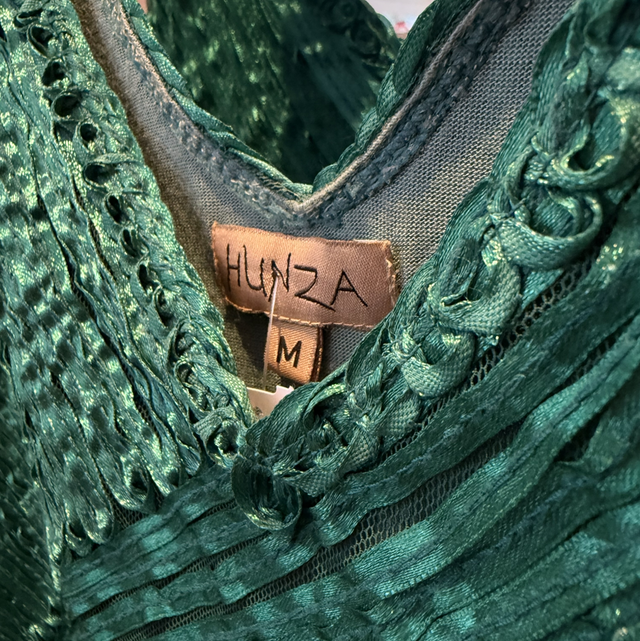 This green Hunza dress is a true statement piece. The fabric has a strong structure and a beautiful stretch, creating a flattering, form fitting silhouette that hugs the body in all the right places.