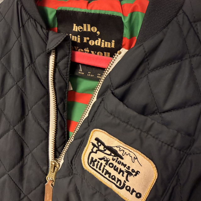 This bomber jacket makes my heart skip a beat. Cool, practical, and in excellent condition. Perfect for dry spring and summer days, and super stylish too! Easy to put on and take off, and a piece your little one can grow into, since it also looks great worn oversized. That’s why it’s listed as size 1.5–3 years.