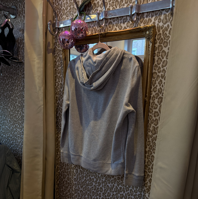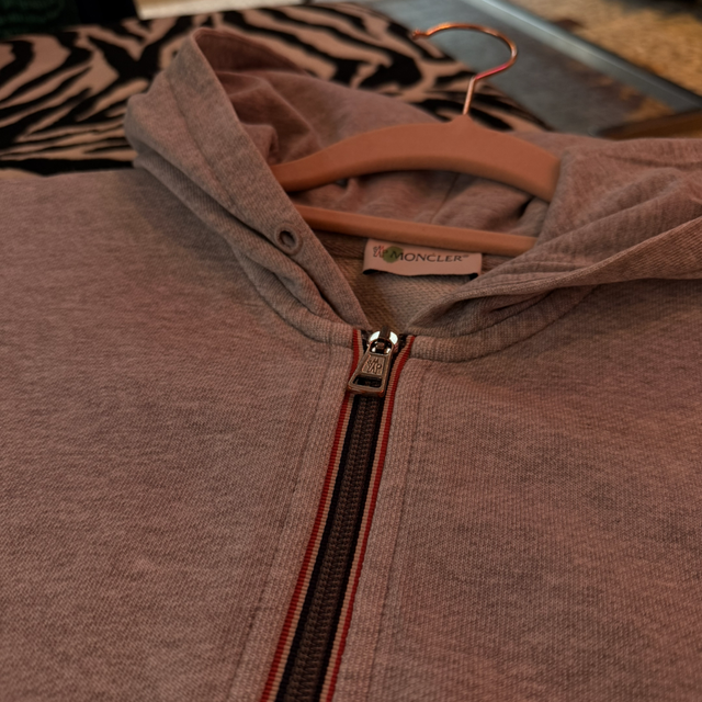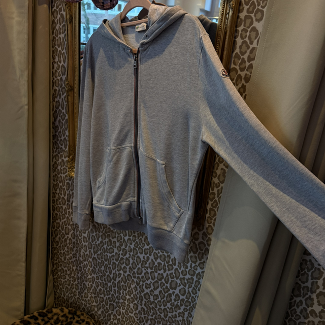 This grey Moncler cardigan is a size L and a timeless luxury essential. It has that signature Moncler look, sporty yet refined, making it easy to style both casually and more dressed up.