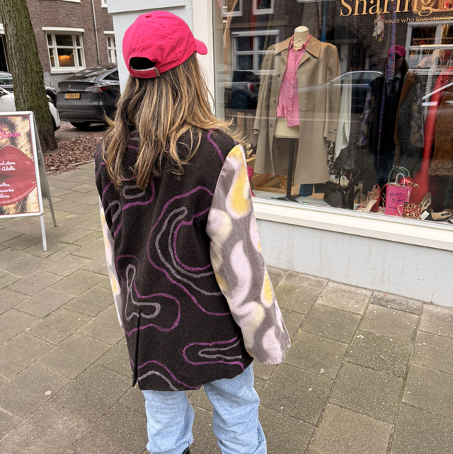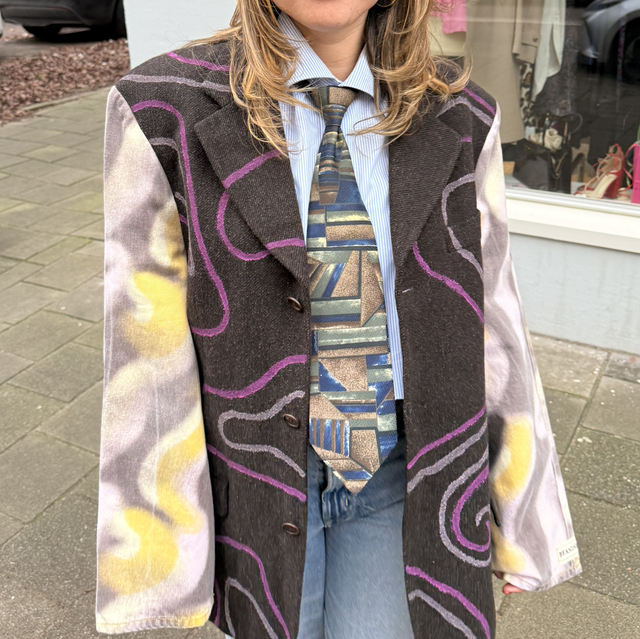 Door het gebruik van textielverf is deze blazer écht uniek. Elk detail is met de hand aangebracht, waardoor geen enkel exemplaar ooit hetzelfde kan zijn. Van dit item bestaat er letterlijk maar één. Geen herhaling, geen tweede versie, just this one.