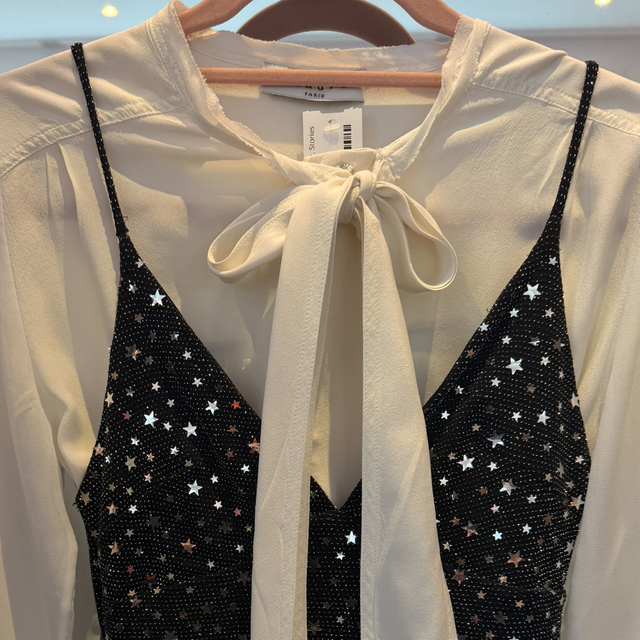 This beautiful silk blouse feels like butter in your hands. It’s slightly sheer, so you can get creative with how you style it, wear something underneath or over it, whatever suits your taste. It’s truly a chic blouse. You can dress it up or down, however you like.