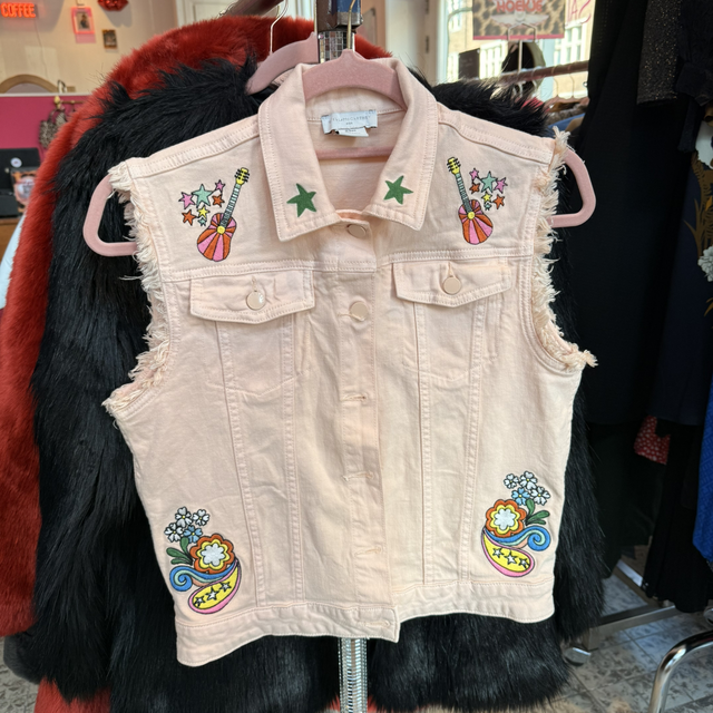 This pink gilet by Stella McCartney is one of those happy pieces you instantly fall in love with. Playful, colorful and full of charm. Perfect to brighten up any outfit. Lovely layered over a long sleeve, dress or blouse and great for mixing and matching. A true statement piece for little fashion lovers.